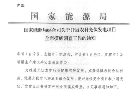 为推进光伏发电行业健康有序发展,充分保障农民合法权益,促进光伏发电和农业融合发展,国家能源局综合司发布了关于开展农村光伏发电项目全面摸底调查工作的通知,对光伏复合项目和户用光伏开发建设运营情况开展全面摸底调查。