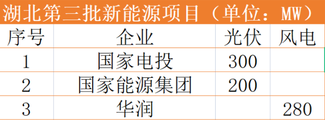 3月10日,湖北省能源局公布2022年第三批新能源发电项目名单,规模共计780MW。其中,光伏500MW,风电280MW。