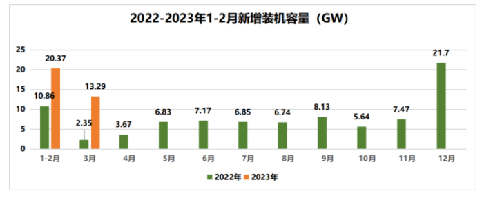 4月23日,国家能源局发布1-3月份全国电力工业统计数据。其中,1-3月光伏新增装机量33.66GW,同比增长154.81%;3月新增装机13.29GW,同比增长463%。根据此数据,推测2023年光伏发电装机规模大概率能超过100GW。