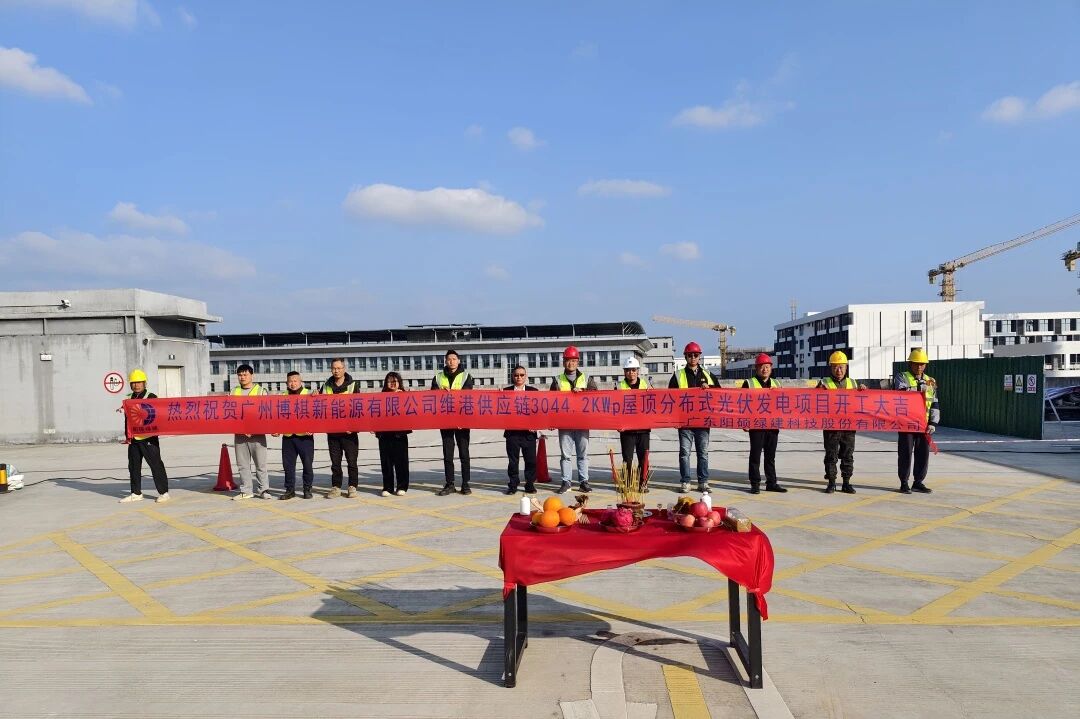 2026年1月6日,由阳硕绿建承建的广州博棋新能源有限公司维港供应链3.0442MW屋顶分布式光伏发电项目正式开工!作为2026年首个开工的项目,标志着阳硕绿建将开启新一年的绿色能源征程!
