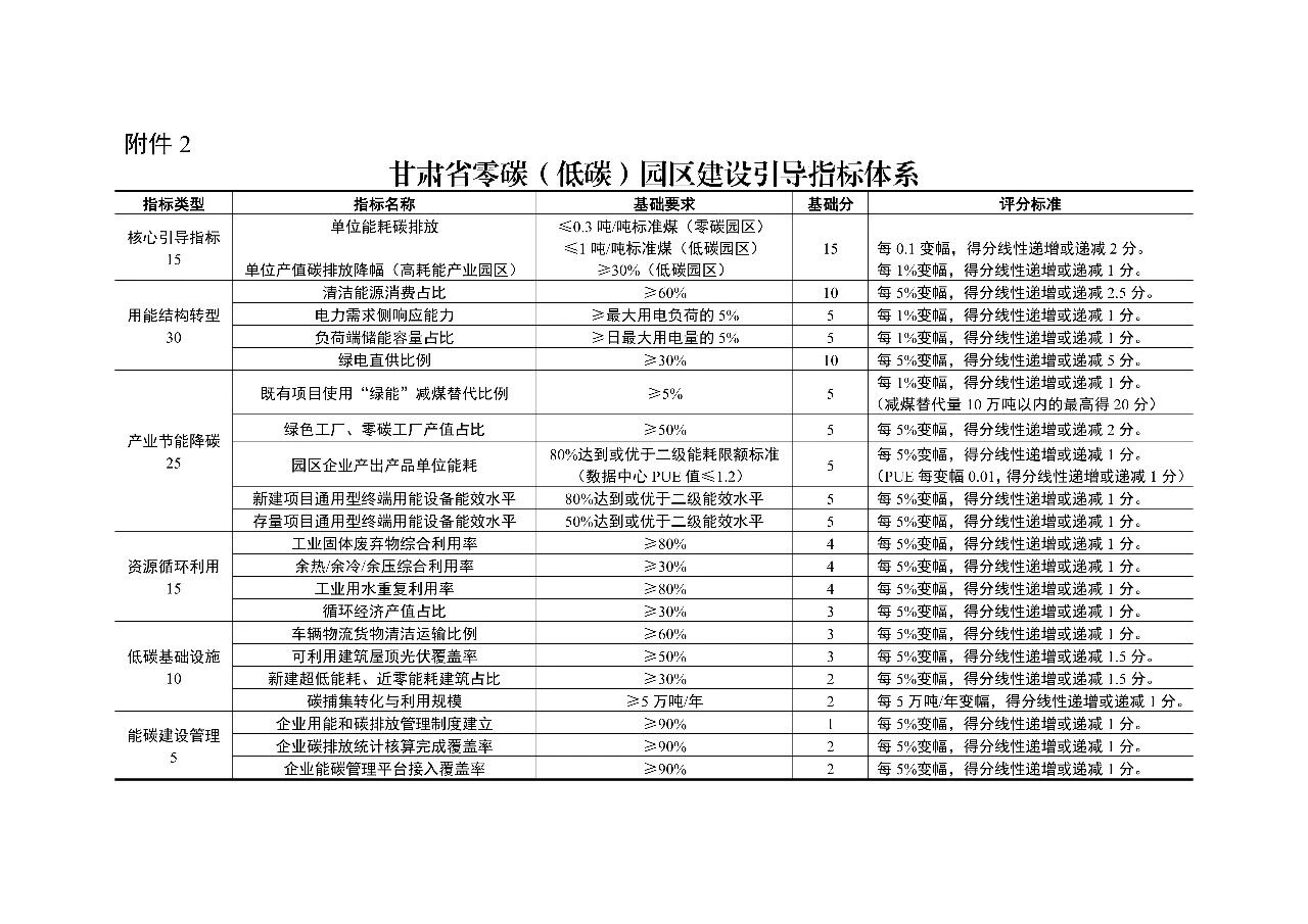附件2.甘肃省零碳(低碳)园区建设引导指标体系