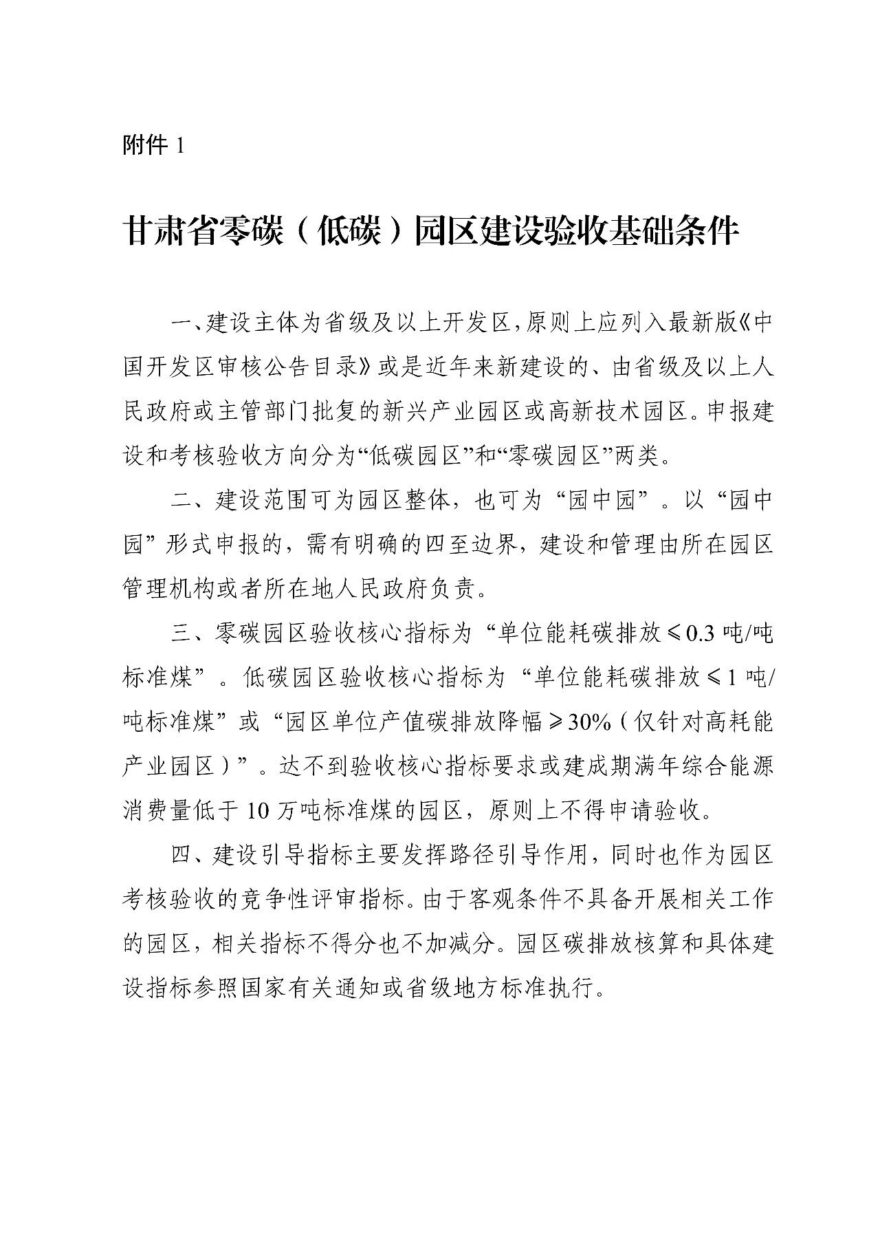 附件1.甘肃省零碳(低碳)园区建设验收基础条件